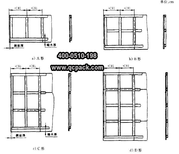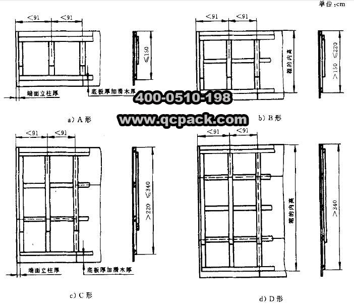 框架木箱的底座也是由滑木、輔助滑木、端木、枕木和底板組成的,其結(jié)構(gòu)與滑木箱基本相同。底座在裝上內(nèi)裝物而未裝側(cè)面和端面時(shí),不能單靠底座進(jìn)行起吊作業(yè),特殊情況需要起吊時(shí),需將底座加固,參照《GB/T 10819-2005 木制底盤》進(jìn)行。